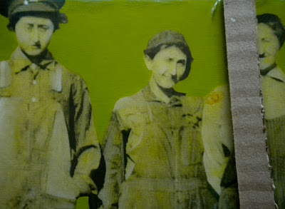 Well THIS was an unfortunate incident! After pouring the resin on a piece it is rather sticky and susceptible to dust. Therefore it is necessary to cover it with a box to protect it while it dries for a couple of days. Unfortunately for me, once I placed the cardboard box over top, the inside flap folded down and became one with the piece.....a union I wasn't to find out about until two days later when I wanted to peek at it and see how it was coming along. Needless to say I wasn't thrilled. I trimmed the box flap away as best I could and for days contemplated ways of incorporating the cardboard strip.....but alas I realized this one was a goner! It's too bad, I quite enjoyed how the image had taken shape. It was a learning experience. From this point on ward I always make a point to tape down the flaps on the inside. It's not a total loss. I still feel a fondness for this sad piece. It sits in the china cabinet in my living room, a reminder that, in everything we do, we are constantly learning.